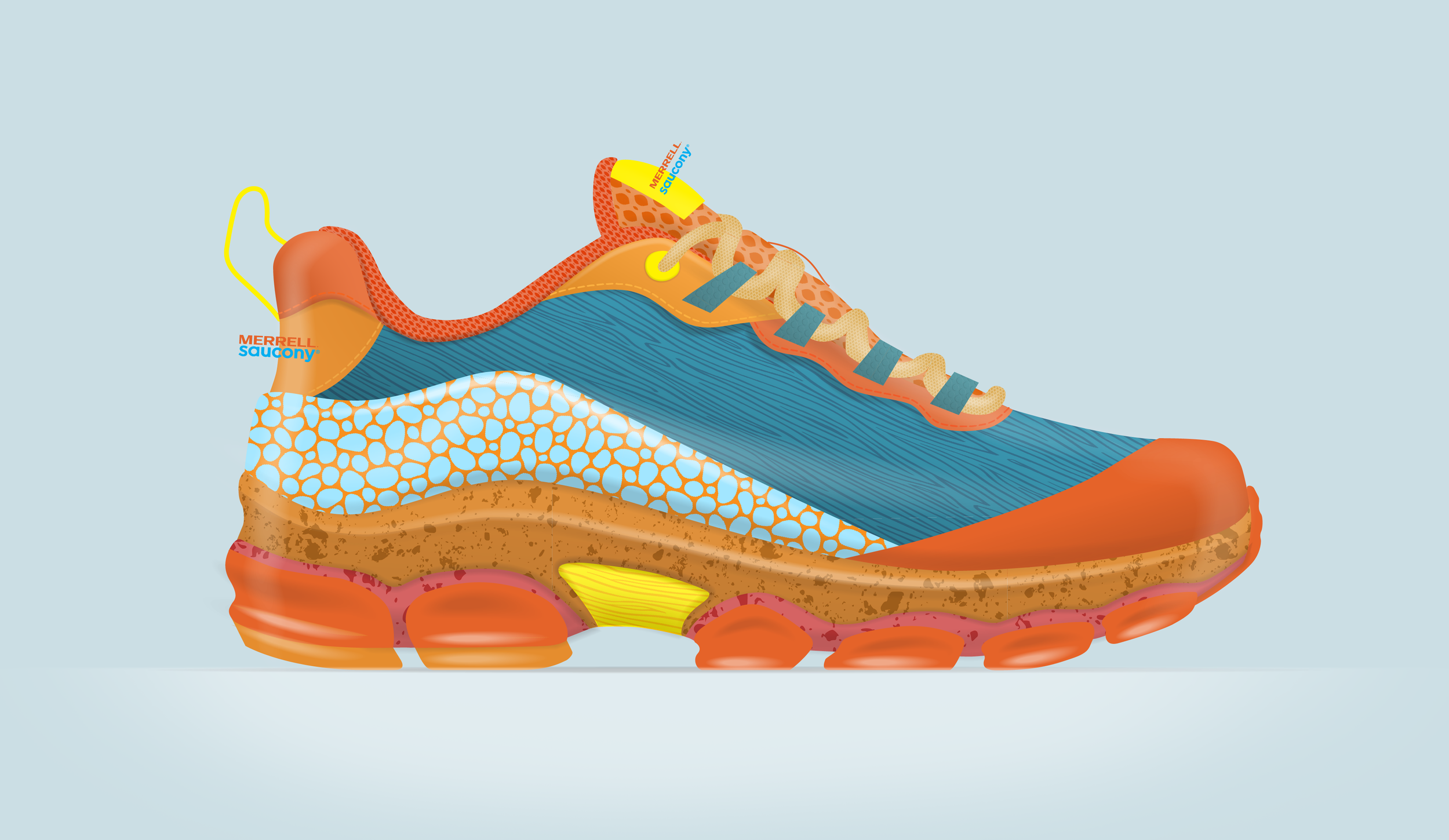 Let’s create a lifestyle footwear concept to capture the essence of the greater outdoors while drawing a dotted line back to Saucony and Merrell’s iconographies.